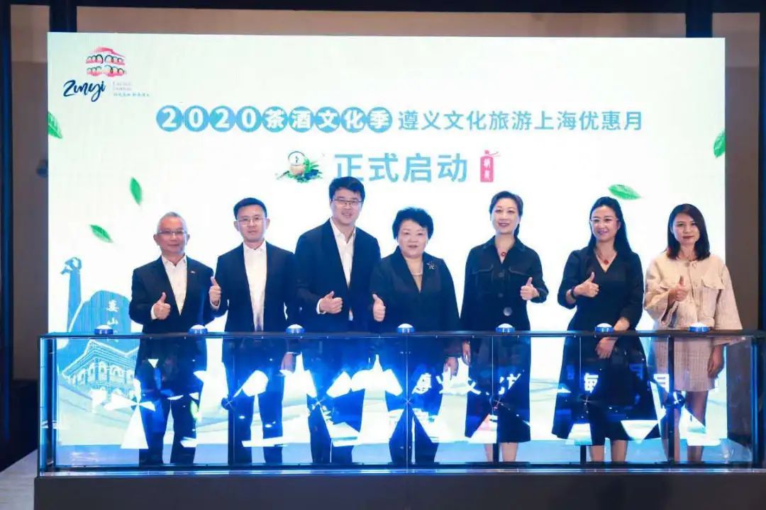最后,遵义市领导与上海市文旅局、绿地集团领导共同为“2020茶酒文化季”遵义文化旅游上海优惠月活动按下启动键。