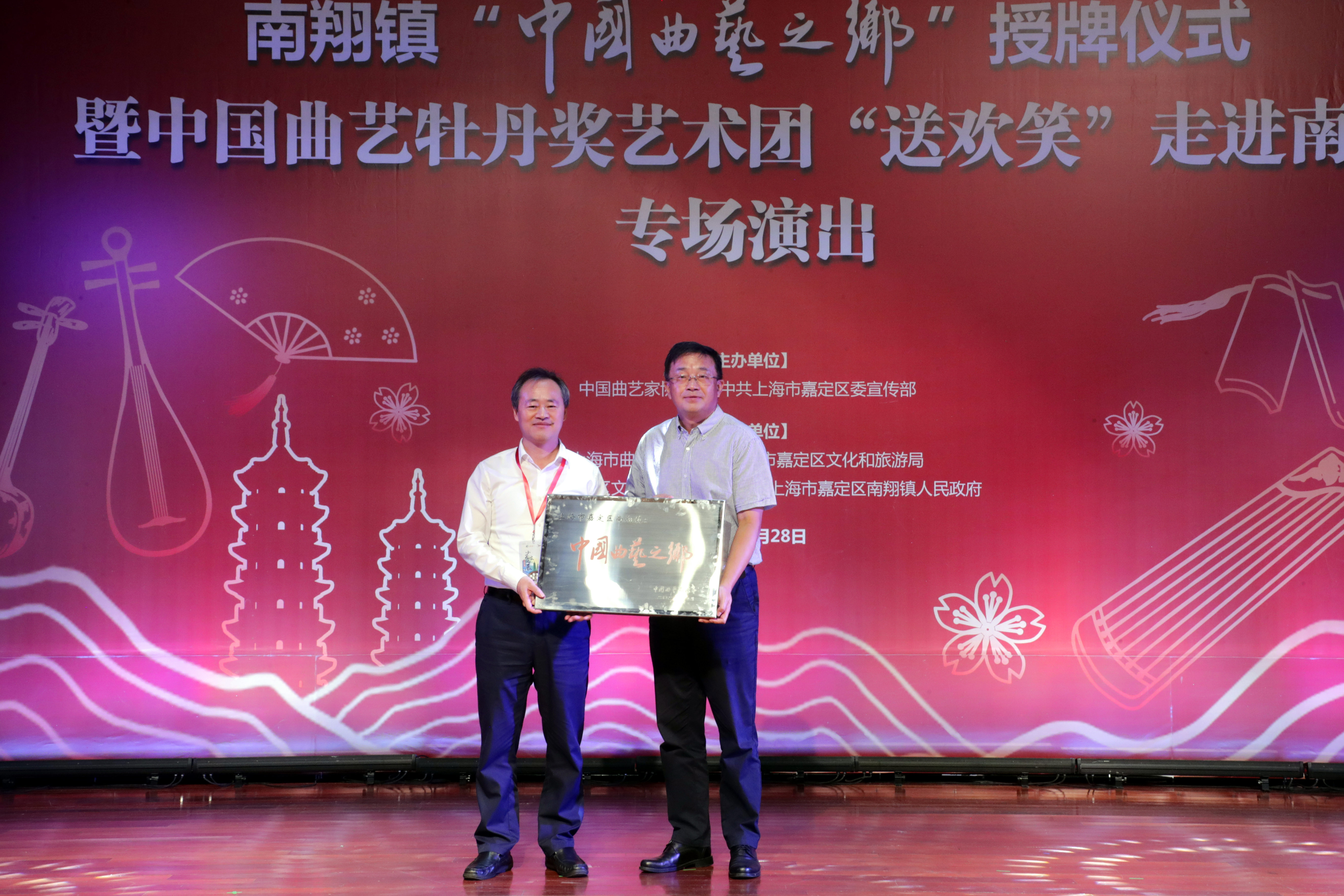 9月28日上午,南翔镇“中国曲艺之乡”授牌仪式暨中国曲艺牡丹奖艺术团“送欢笑”走进南翔专场演出,在南翔镇文化体育服务中心举行。中国曲艺家协会分党组副书记、秘书长曲华江为南翔镇授牌。