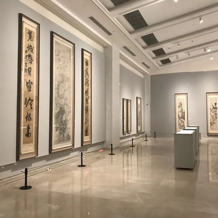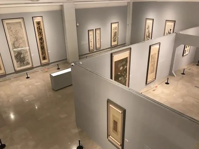 之后这是一片开阔的展厅,展现着不少书画精品,基本囊括了如文徵明、董其昌、陈继儒、陈老莲、八大山人等一些列明清大家的书法作品,也有像“古文翻译外国小说第一人”林琴南等与朵云轩有过交集的近代名士书画作品。