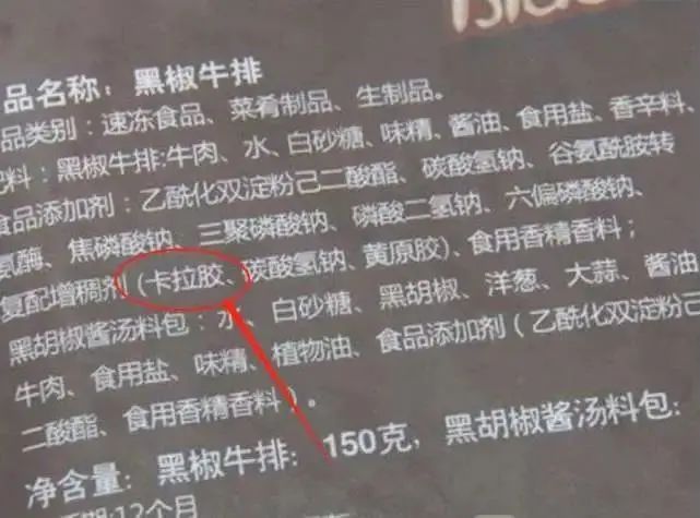 我们在超市常见的牛排,在配料表中往往能看到“卡拉胶”这几个字,这是一种天然的食物粘合剂,也是一种常见的肉类添加剂,一般出现这种添加剂的牛排都是合成牛排,即使包装上打着原切的口号,只要配料表有这几个字,毫无疑问都是假原切,真合成。