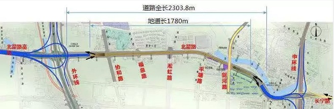 北翟路地道为北翟高架至中环提供了快速通道,此次通车的地面道路将进一步为沿线单位、居民的交通出行带来极大便利,有效缓解临近中环、北翟路高架进出口匝道交通压力,大幅度提高地区交通服务水平。同时,也将进一步完善虹桥综合交通枢纽站交通快速疏解通道,平衡周边快速路网交通,为虹桥商务区的开发建设提供良好的交通环境。