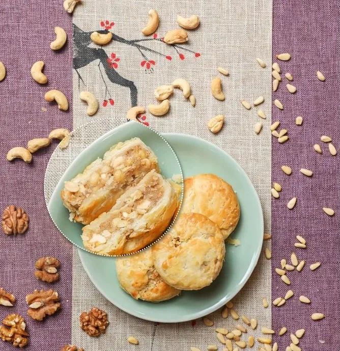 独特椒盐馅料在带出果仁的清香同时