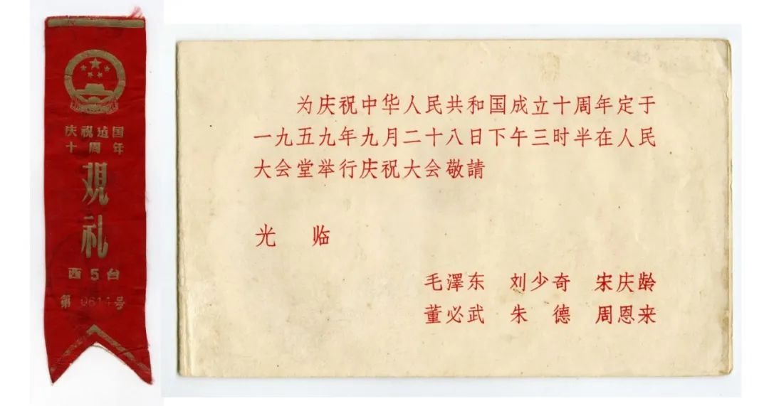 这张照片是1959年上海赴京观礼团的合影照片,在照片第一排正中间的是马桥镇居民宋秀娟女士,去年在征集志愿者顾福根同志的牵线下,宋秀娟将其保存了近60年的印有“中华人民共和国建国十周年筹备委员会”的请柬、观礼标,以及上海赴京观礼团的合影照片,无偿捐赠给了闵行区档案馆。