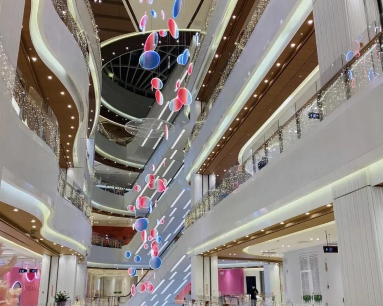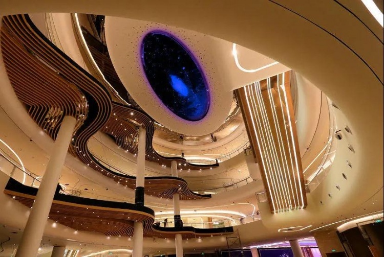 “都市银河”上海陆家嘴中心L+MALL,商场的主中庭用天花微光天幕呈现蔚蓝的银河主题,同时配合简约大气的淡色立面,搭配动感流畅的“流年”光带,具有很强的视觉冲击。顾客们漫步其中,就能拥有充满未来感的体验。