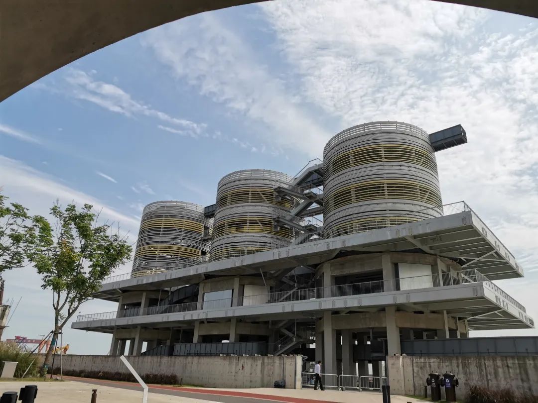 原来,这3个黄灰色相间、巨大而醒目的“大蒸笼”是当年电厂的储灰罐。现在,它们是即将在下半年正式对外开放的“灰仓艺术中心”。