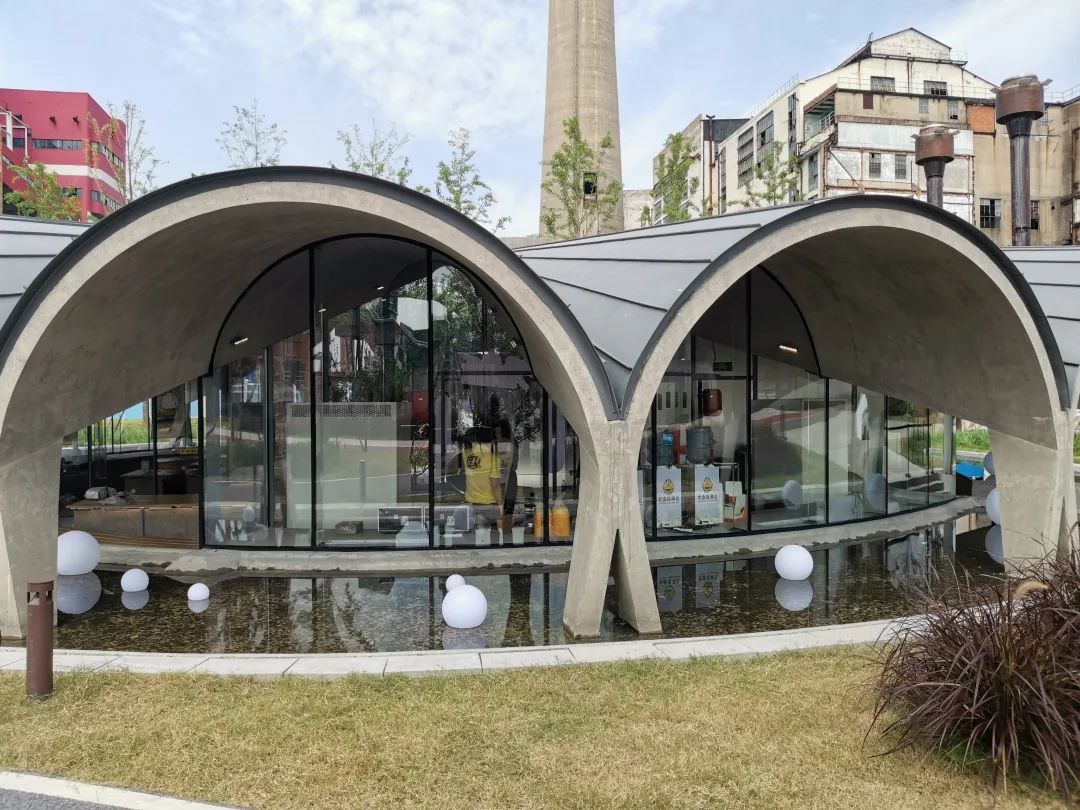 在地标建筑众多的杨浦滨江,还藏着许多你不曾留意的独特空间。比如说,在电厂遗迹公园内,有一个看起来超现实的建筑——净水池咖啡厅。