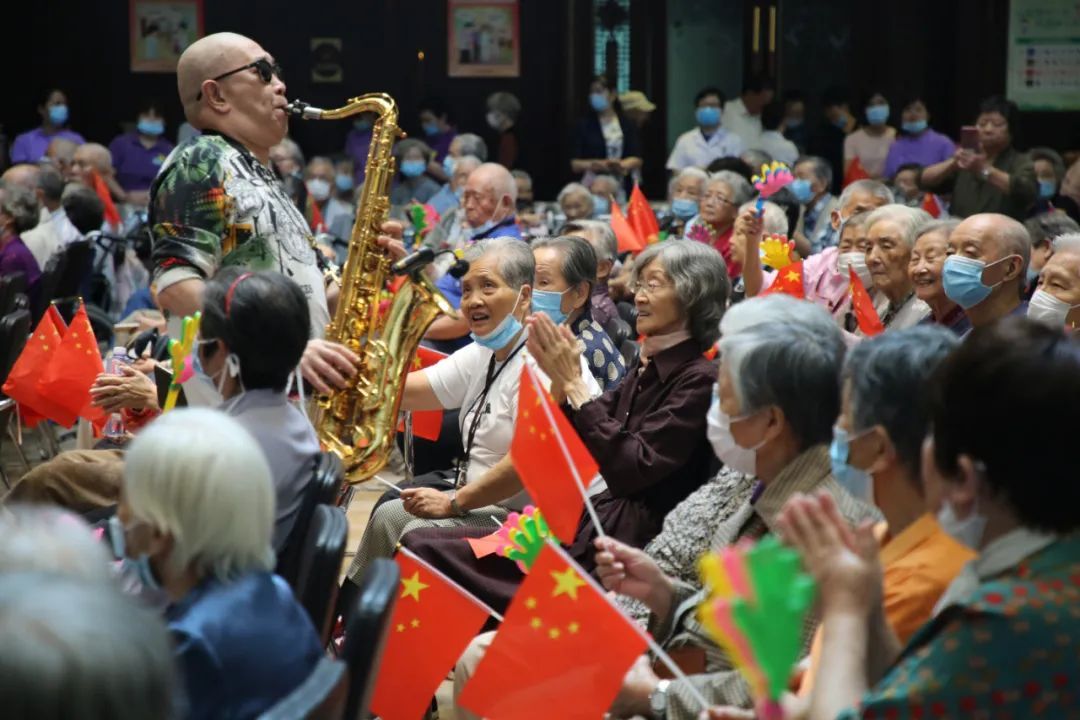 “五星红旗迎风飘扬,胜利歌声多么响亮......”一曲唱罢,老人们在工作人员的帮助下切开生日蛋糕,并一同分享“国庆面”。85岁的孔令德当兵20年,看到国家日渐强盛,他感触颇深:“祖国发展建设得如此之快,是我从没预想到的,现在的生活太幸福了!”
