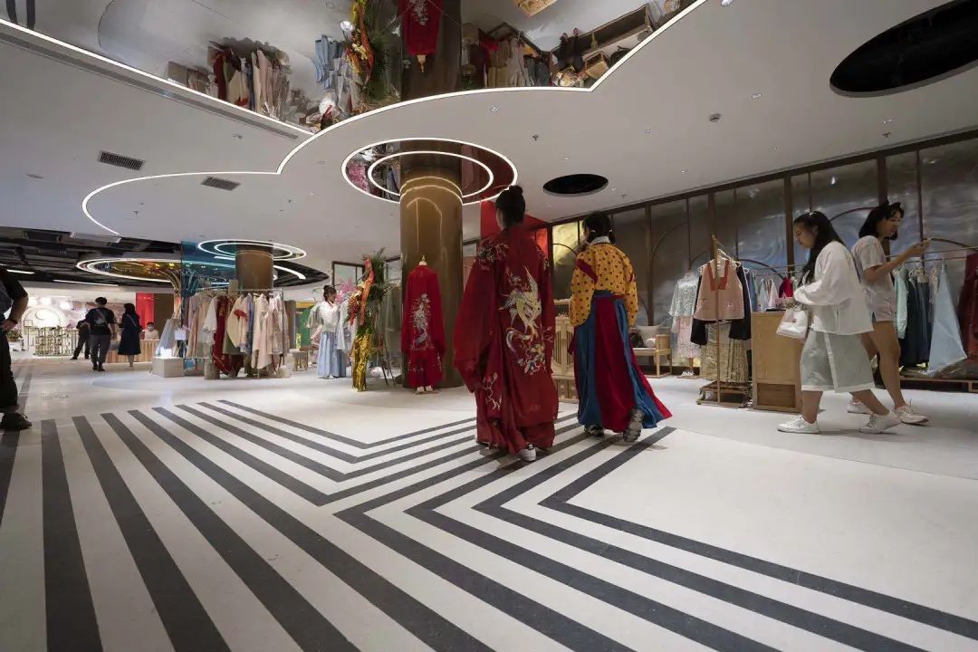 汉服爱好者们可以在这里拥有一站式的沉浸购物体验,汉、宋、明制的汉服一应俱全,还有各种精致配饰与鞋包,贴心的工作人员为你讲解、搭配服装,你可以在里面完成华丽变身。