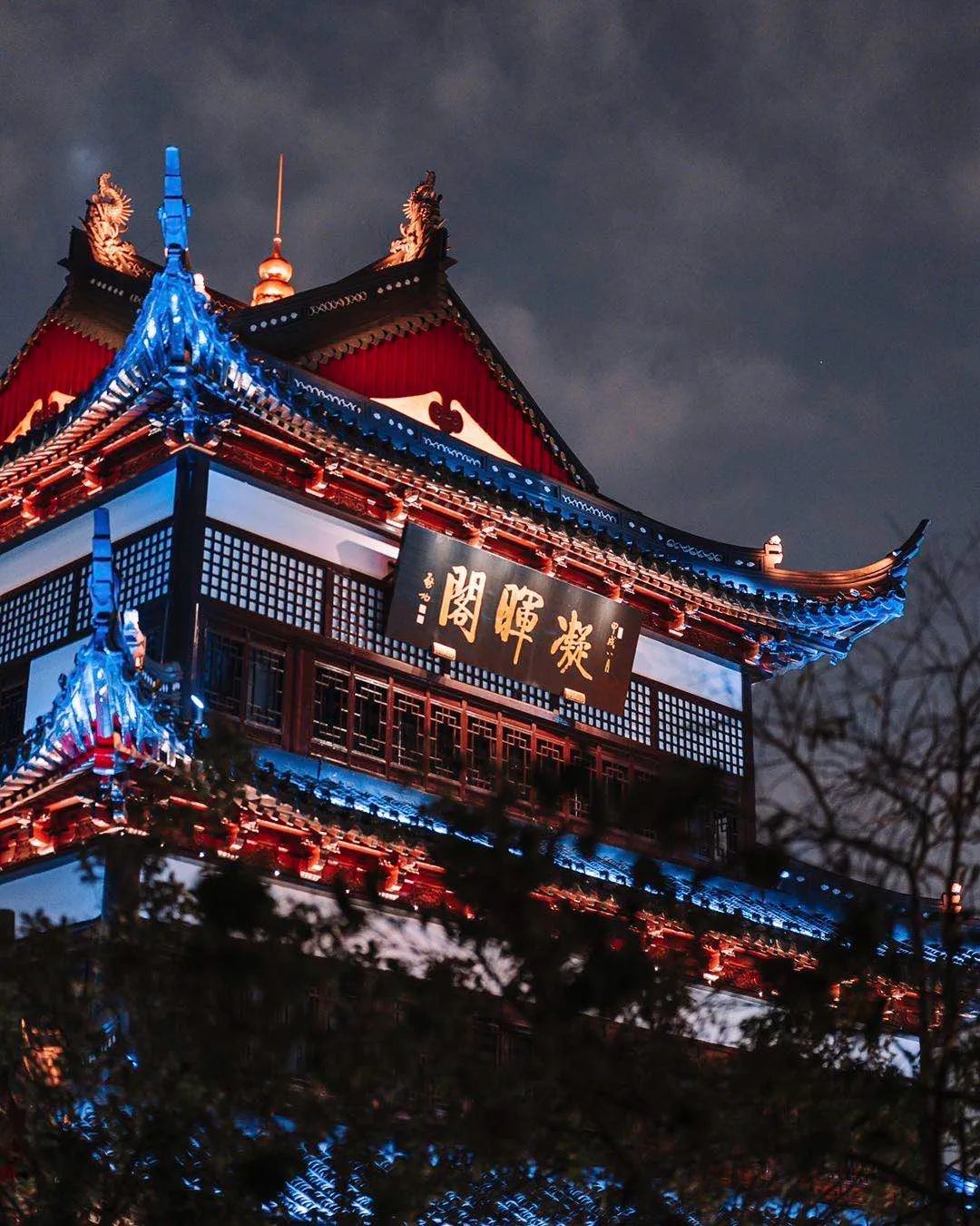超过3000组LED灯具新装在了天裕楼,特别是凝辉阁的外立面,可以组合出65536种动态的颜色。除了有古建筑常用的广漆色,还有复星金、莫兰迪灰……为了迎接国庆,红黄的“国旗”色也将披挂上阵,闪烁之间,犹如满天星斗。