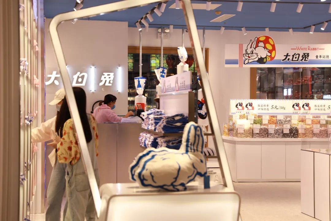 2020年10月,这一国民品牌在豫园百货开设了一家“大白兔专卖店”。大白兔经典奶糖,瞬间让你回到小时候,多达几十种各种口味奶糖无限购。还有授权正版周边——大白兔帆布袋、抱枕,大白兔水杯,任你挑!