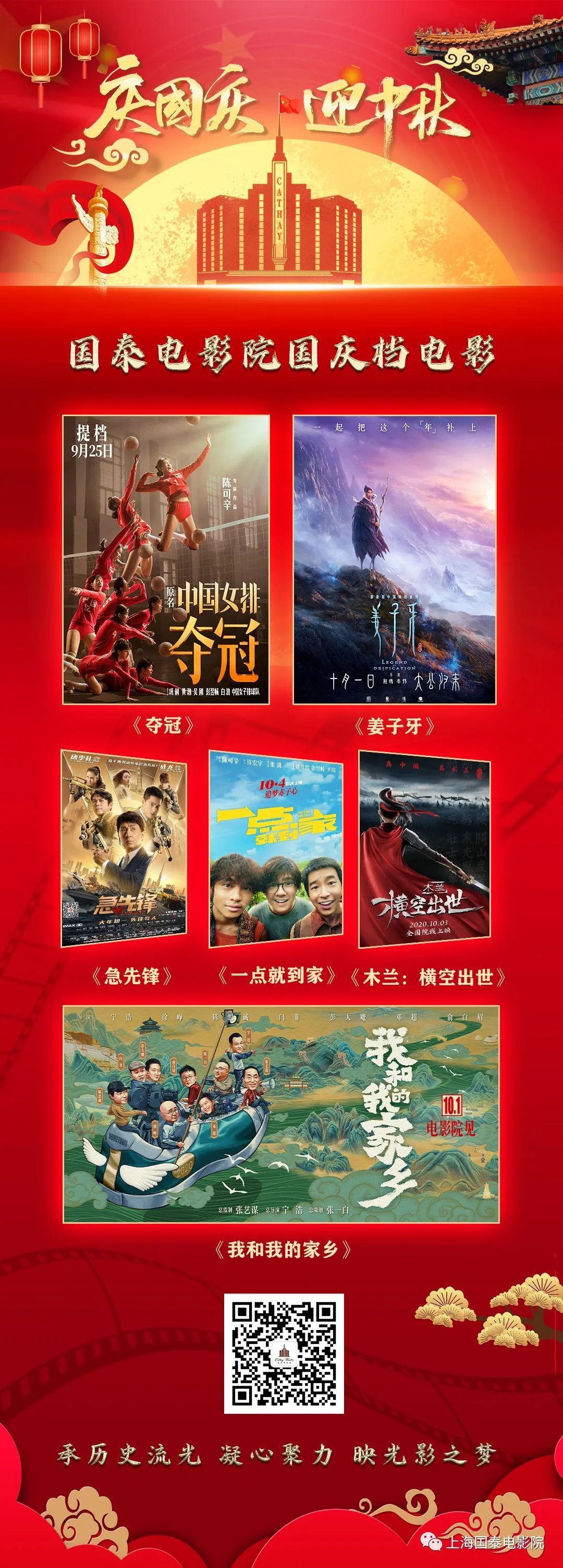 中秋与国庆在今天巧妙的相逢,二者结合在一起,就是专属我们的“中国节”。“中秋和国庆在同一天,在21世纪只有四次,剩下两次是2031年和2077年。” 淮海路扬起的国旗,和满街老字号飘香的月饼;2020年10月1日,国泰电影院迎来国庆中秋双节同庆,国泰民安,阖家团圆!