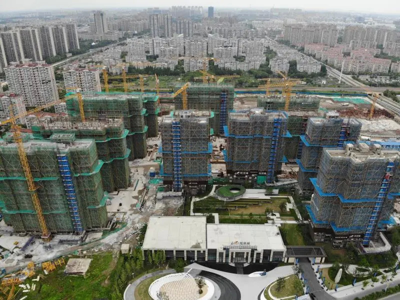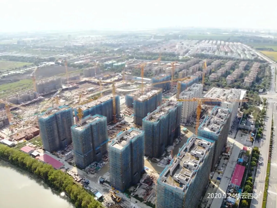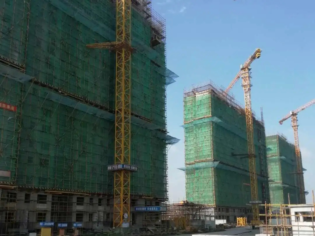 工程进度:四幢高层结构封顶,正在屋顶施工。其余十幢主体结构20-22层。