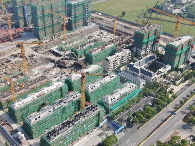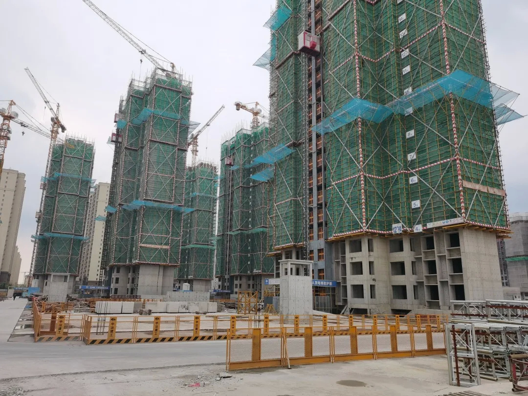 工程进度:各号楼主体结构已完成,目前分批开展内外墙粉刷、防水保温、精装修、门窗安装、室外回填土、电力雨污水排管、围墙等施工。