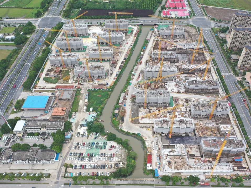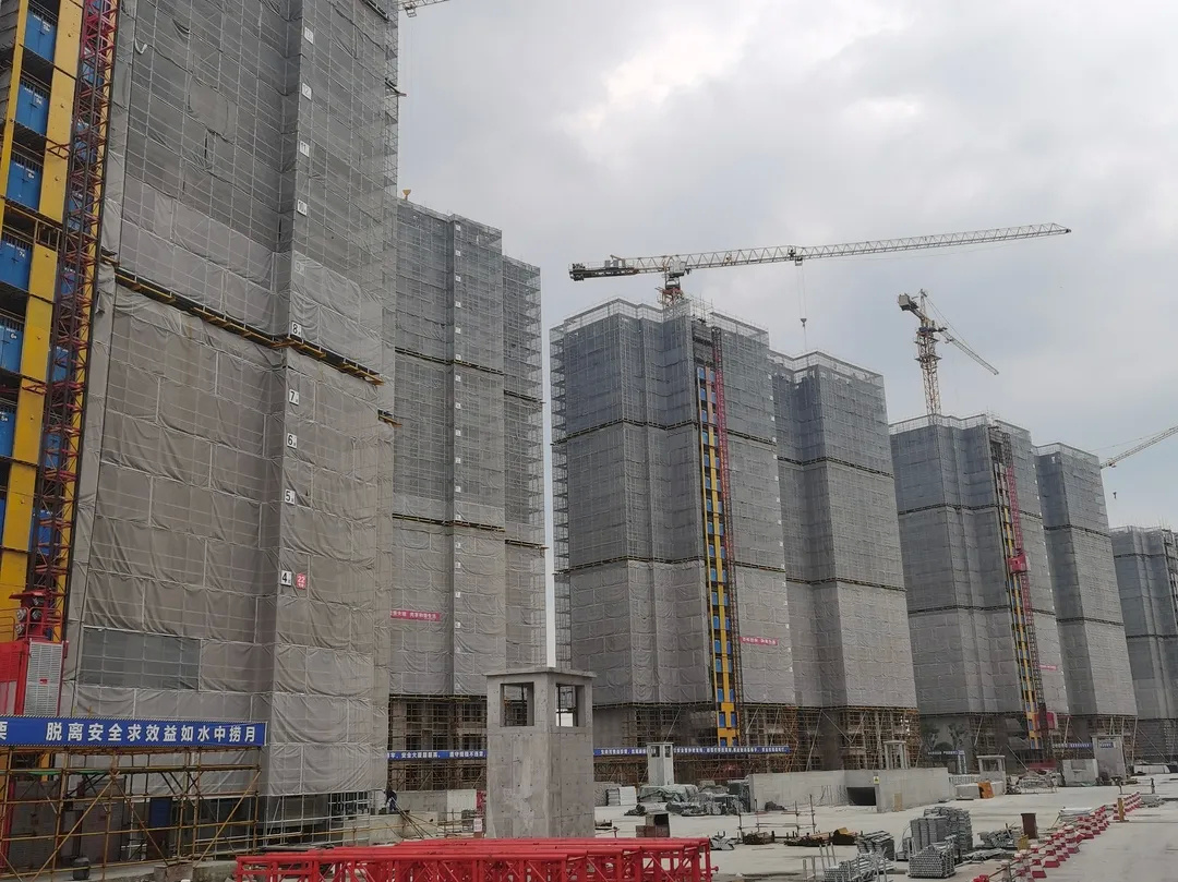 工程进度:首批次叠加结构封顶,小高层施工至9-10层,二次结构施工中,二批次叠加施工2-4层,高层地上结构六层施工。