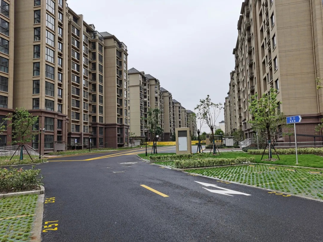 工程进度:各号楼主体结构已完成,室内精装修施工中,外立面涂料完成95%,室外雨污水、自来水、消防、电力排管完成90%,室外道路路基、景观基础放线开挖。