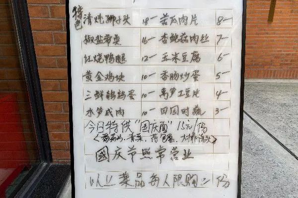 “一个人吃饭,烧得多吃不完,又没法少烧点。我一般点2荤1素,吃不完的打包回家晚上吃。基本上每天大约三、四十元左右。”每天来邻里餐厅就餐的一位单身老人这么说道:“这次中秋国庆放假八天,这里不打烊,照常营业,对我来说真的是解决了吃喝的大问题。”