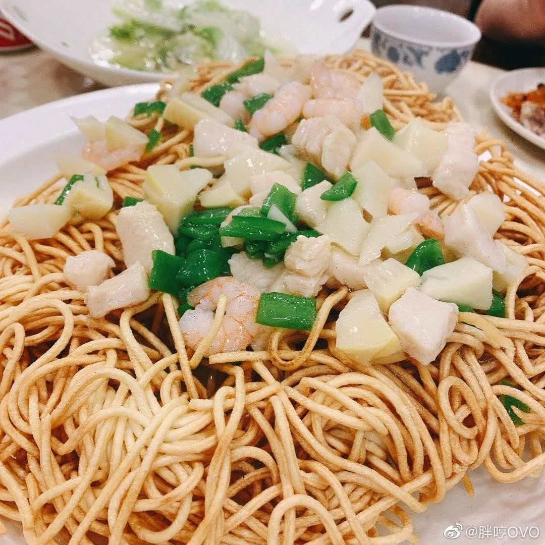 将面条的两面煎成金黄色,捞出,再浇上各类浇头和卤汁,吃之前一定要翻个身,这样才能吃出外脆里嫩的最佳状态!