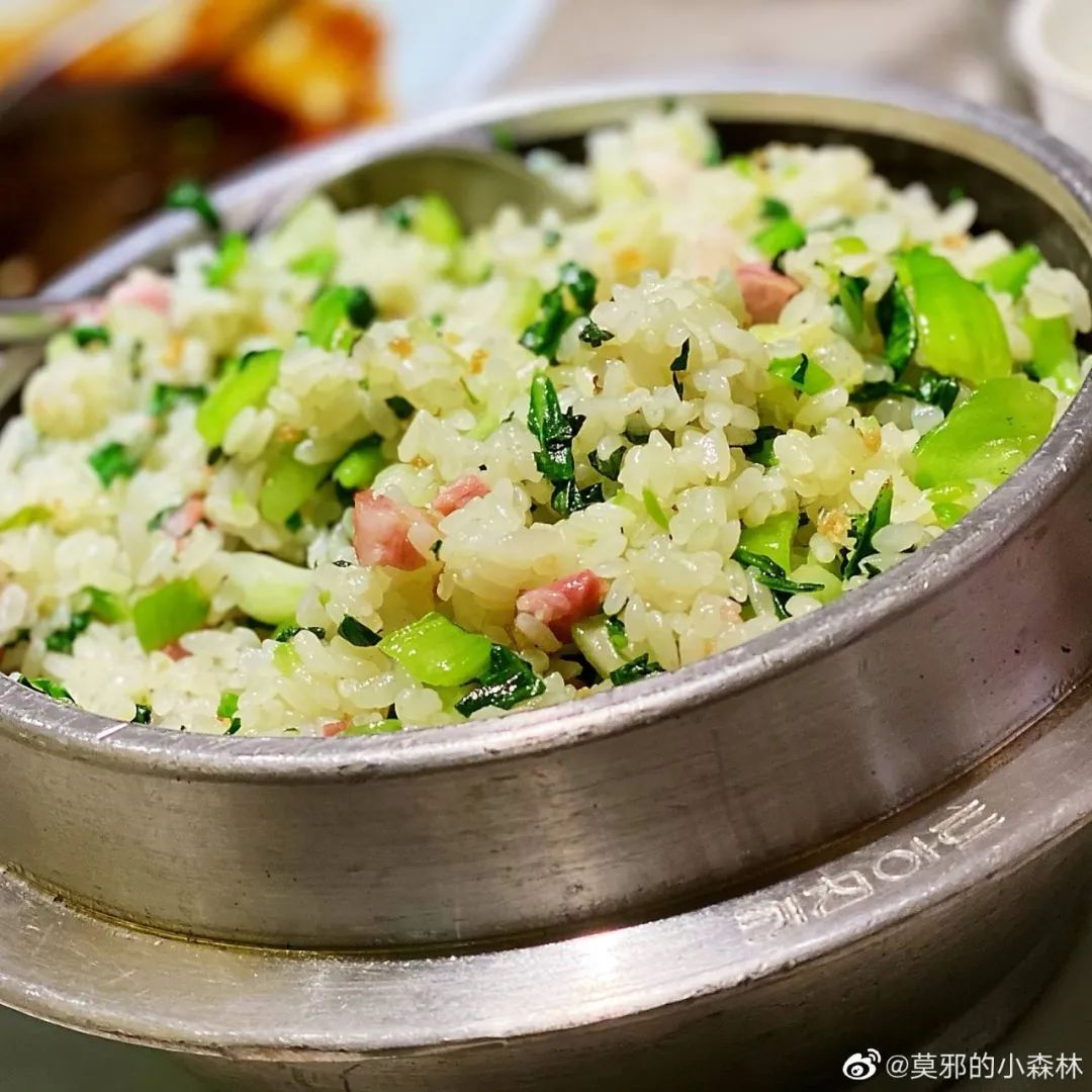 菜饭有种特别的香气,就是那种青菜捂久了,软糯的气息。咸肉要带着肥膘,这样油脂会裹上米饭。