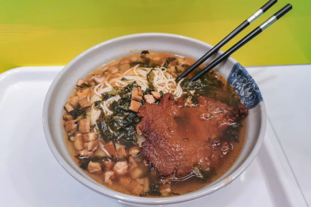 除了辣肉面,还有大肠面、大排面、黄鱼面、牛蛙面、鳝丝面……一碗最简单不过的面,浇头却是千千万。一餐换一种浇头,至少一周不重样,怎么吃都不厌!