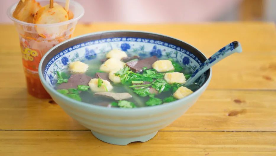 小小一碗鸭血粉丝汤却拥有丰富的美味:鸭血、内脏、蔬菜、粉丝……