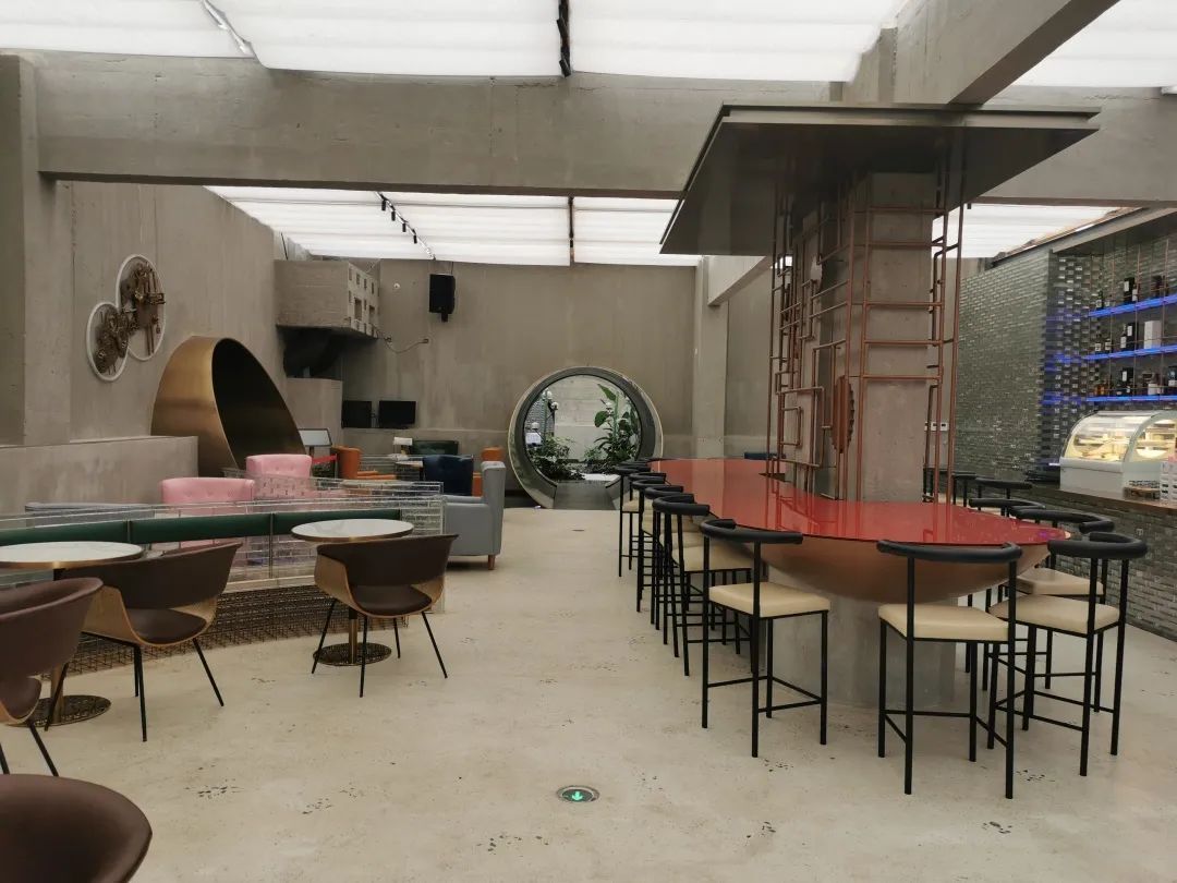 坐在沉淀池里喝咖啡,环顾四周是纵横交错的圆筒状大型输送管道,抬头能看见池子上方的一抹蓝天,恍惚间仿佛置身于百年前的制皂工艺现场。