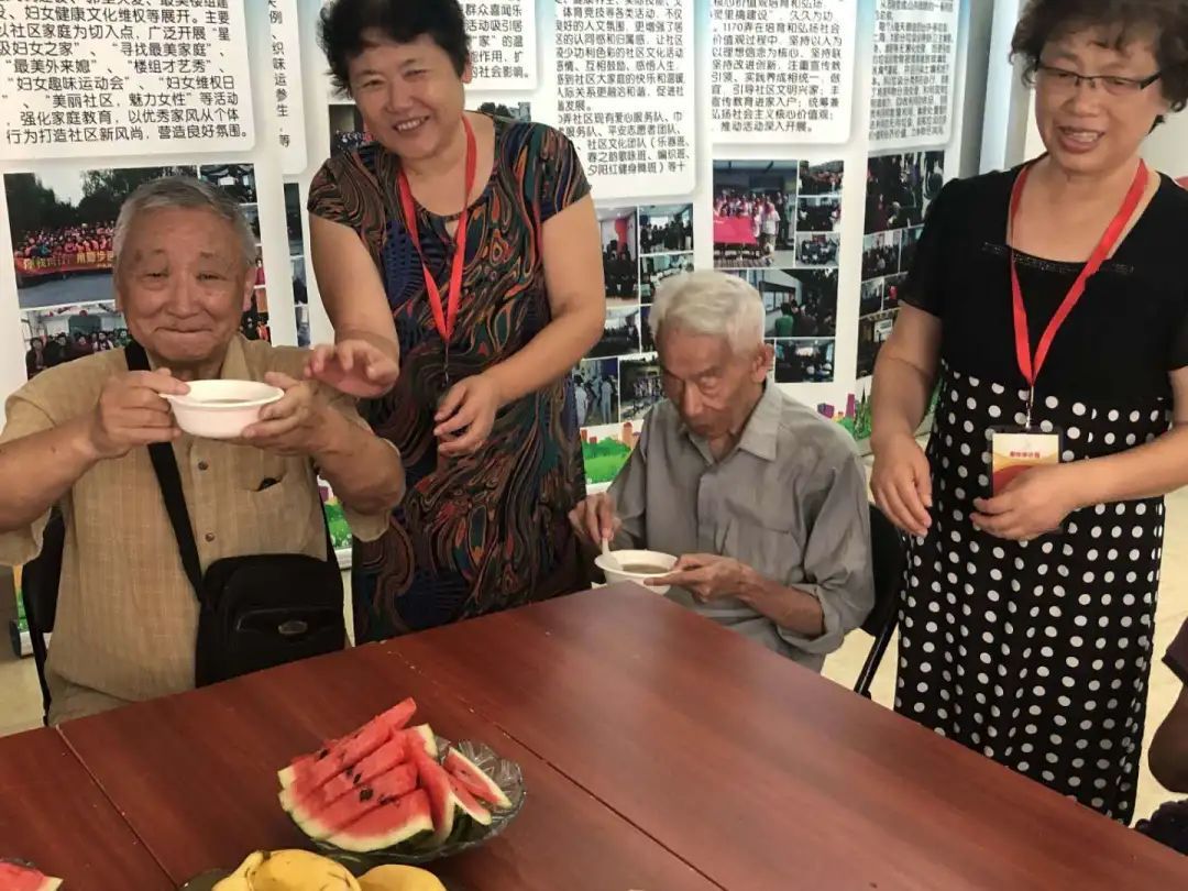 △ 盛夏酷暑,志愿者为社区老人送上西瓜、绿豆汤防暑降温