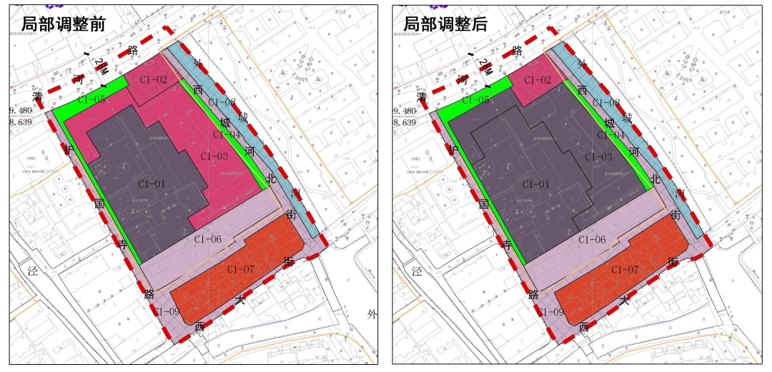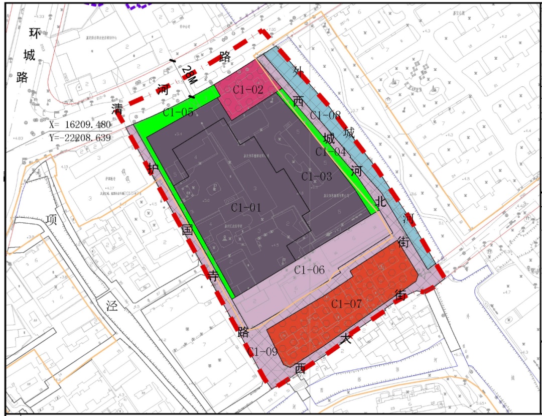 本次涉及调整的C1街坊位于西门历史文化风貌保护区东侧,四至边界:北至清河路、西至护国寺路、南至西大街、东至外城河,用地面积约2.79公顷。本次局部调整主要涉及C1-03地块。