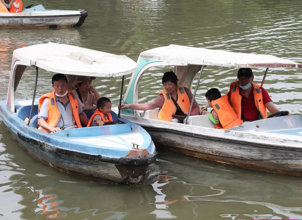 涛声桥边上是电动船,主要依靠电力驱动游船,限四人乘坐。