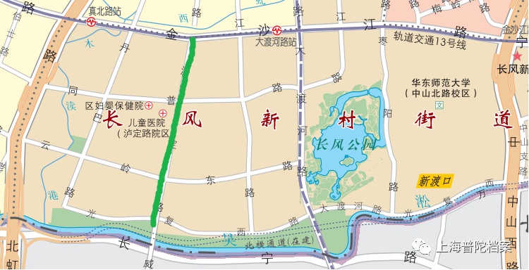 泸定路位于普陀区长风新村街道。北起金沙江路,南至泸定路桥,经同普路、云岭东路、光复西路,南北连接着普陀区和长宁区。