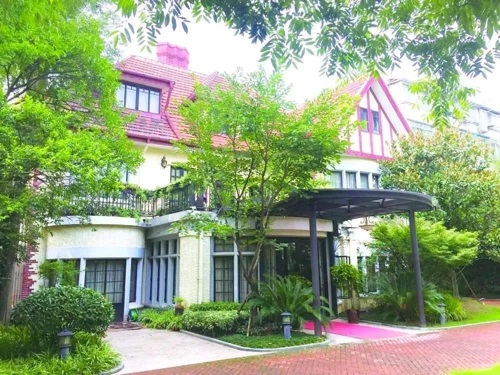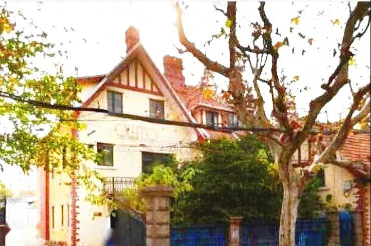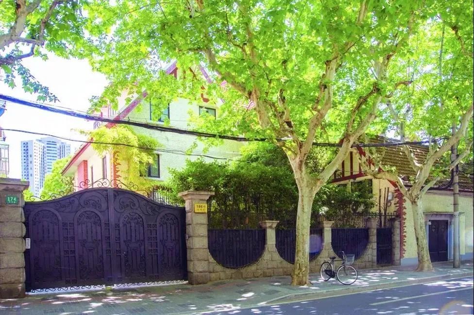 武夷路174号掩映在一片绿树浓荫中,在马路上行走的人只看得见一点裸露木构架的奶黄色墙面、尖尖的屋顶和屋面上伸出的老虎窗。面朝武夷路的两扇厚厚的密不透风的雕花大铁门锁住了一院的姹紫嫣红,铁门上方一圈铸铁花纹带着几分妩媚,更增加了这深深庭院的神秘感。