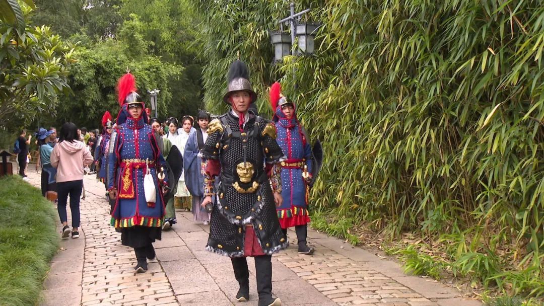 古风巡园是上海大观园每逢长假最具特色的品牌游园活动之一。今年的中秋、国庆黄金周期间,游客除了能与“刘姥姥”和“十二金钗”结伴而行外,还能欣赏到威武的明朝甲胄展示和汉服展示,感受到穿越不同朝代的游园体验。