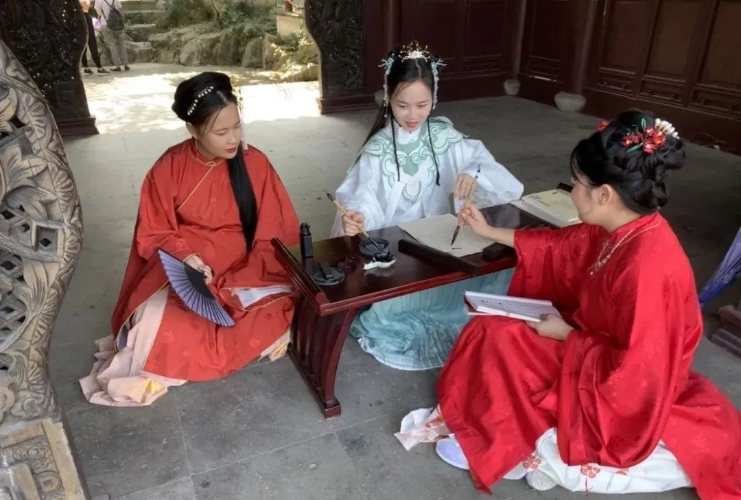 此外,景区还在九曲桥的亭榭等处为游客准备了古风抄书活动,让大家在古典园林内,用纸笔让自己的节奏“慢”下来。