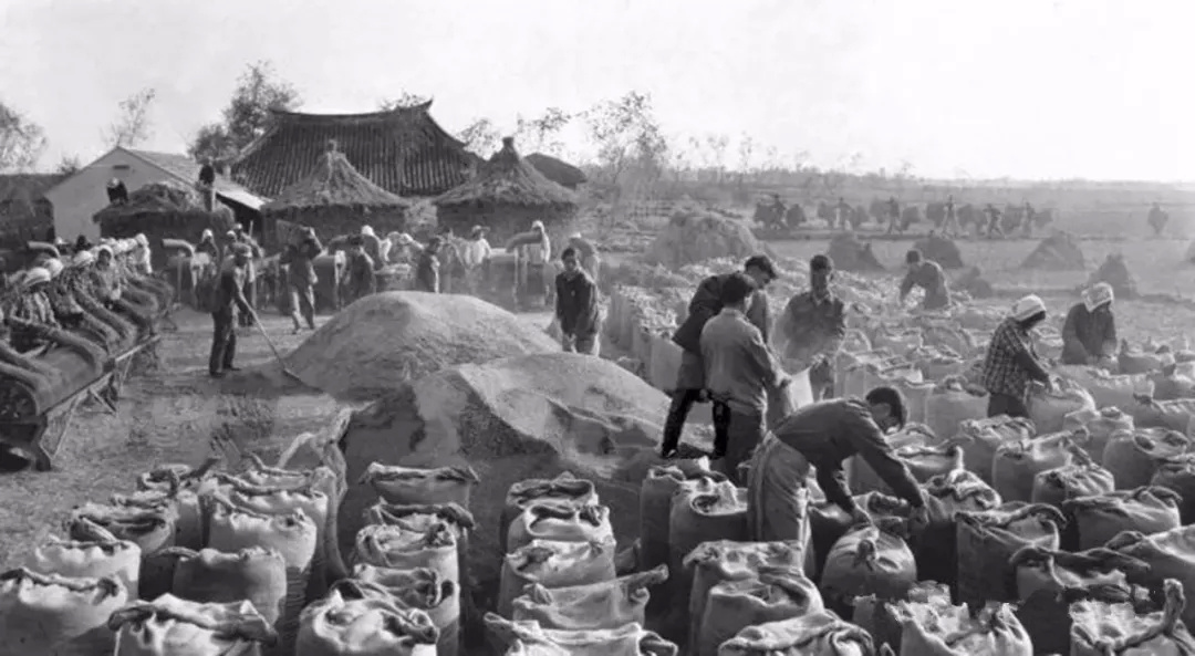 ▲新华社1975年1月25日稿,枫围公社自1967年以来,平均每人每年向国家提供商品粮一千斤以上。全公社二百多个生产队,队队都有储备粮。图为枫围公社东风大队第一生产队的社员正准备向国家交售丰收的晚稻。