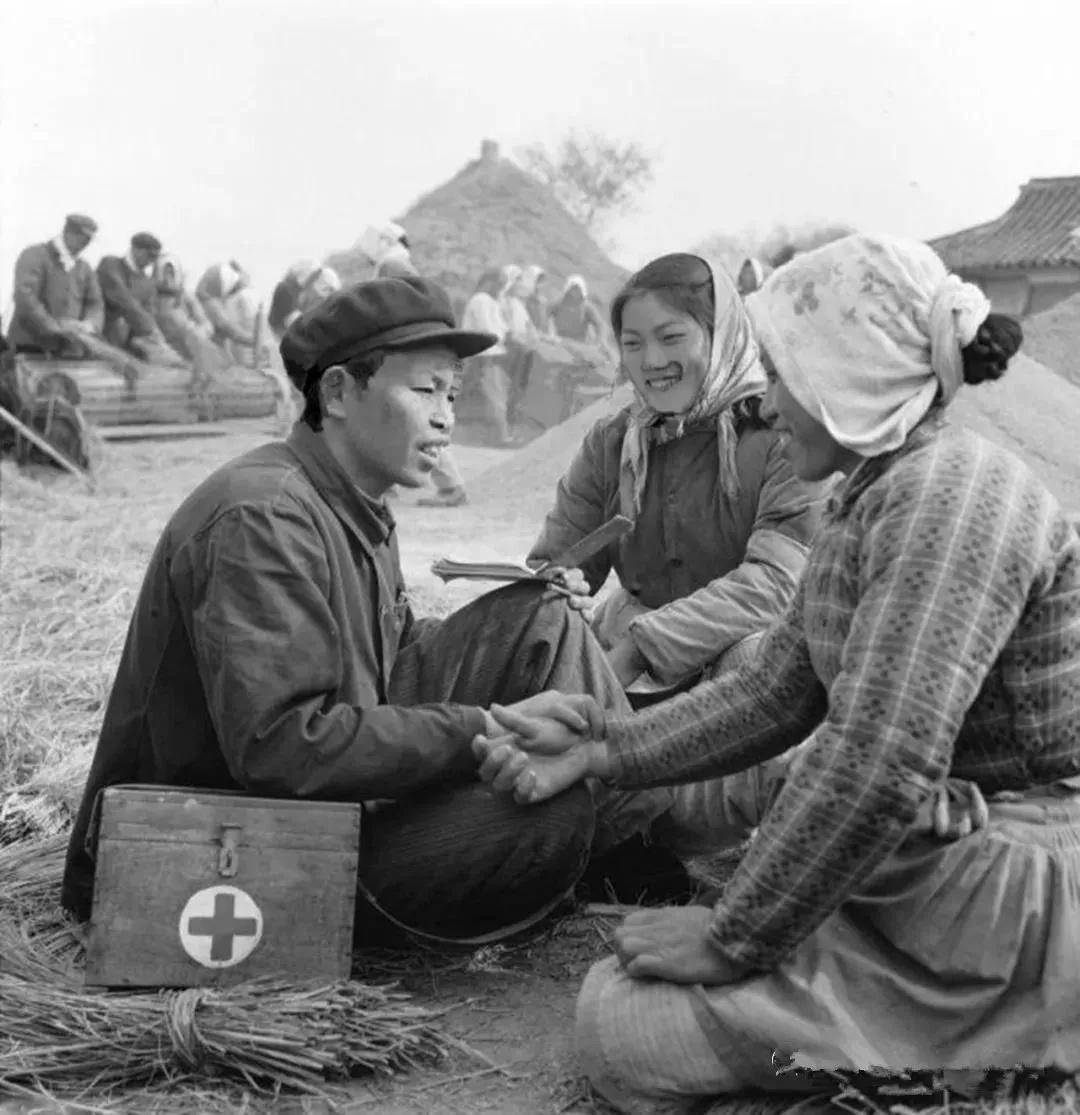 ▲新华社1973年2月15日稿,枫围公社新农大队赤脚医生唐栋梁和其他医生一起,从办起合作医疗制度后,大力采用中草药和新针疗法,减少医药费用开支,使合作医疗制度不断巩固和发展,受到广大贫下中农的拥护。图为唐栋梁正在打谷场上给社员治病。