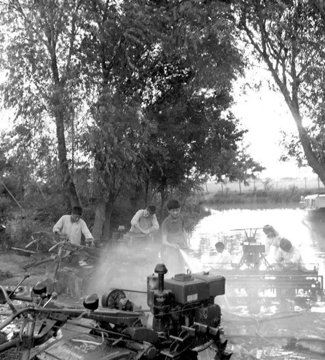 ▲新华社1975年9月19日稿:上海郊区大办农业机械化成绩显著,金山县枫围公社利民大队十一生产队,坚持社会主义方向,用好管好农机,使农业机械发挥更大的作用。图为机手们在劳动之后,将手扶耕耘机、插秧机及时冲洗干净。