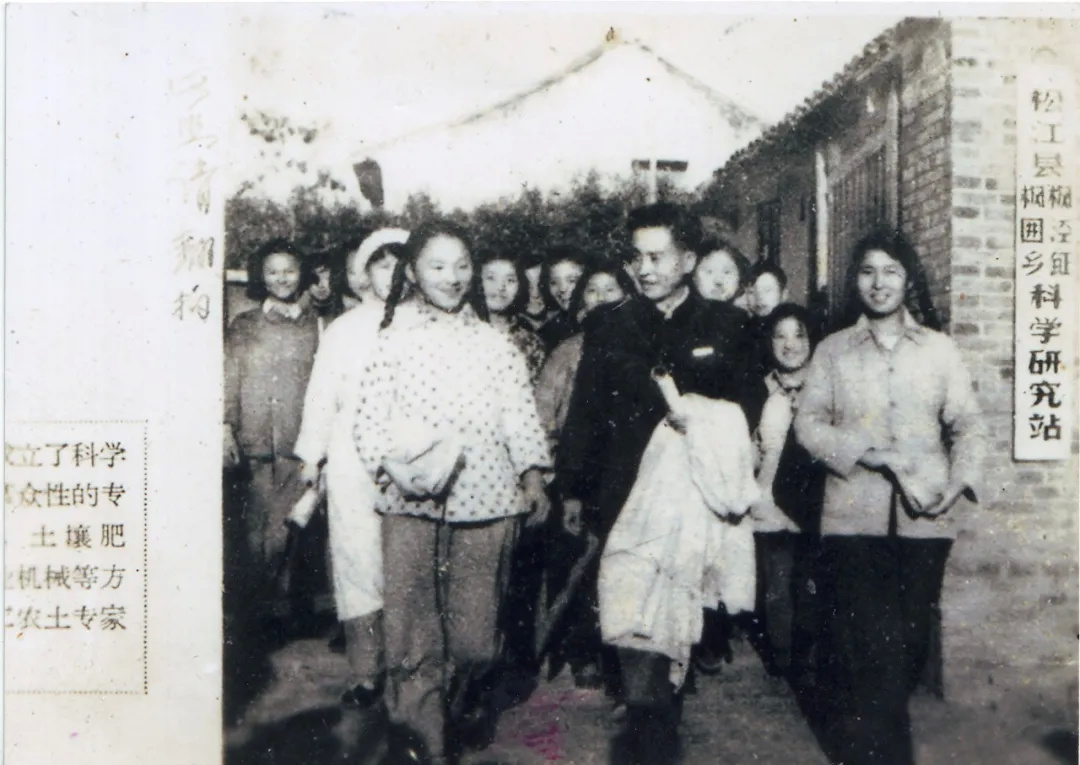▲1965年,农业局采访新华大队“七个姑娘”科研实验小组合影。三亩试验田亩产超2000斤,其中小麦800斤、单季稻1400斤。