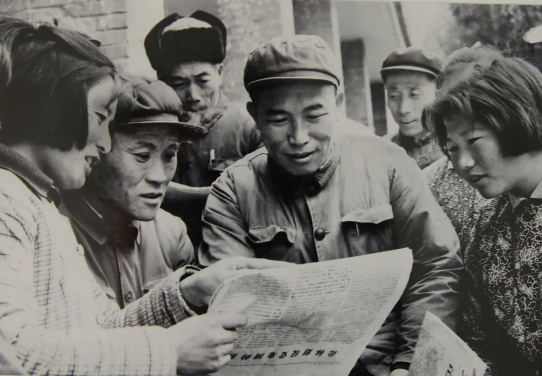▲70年代,枫围人民公社内社论学习。