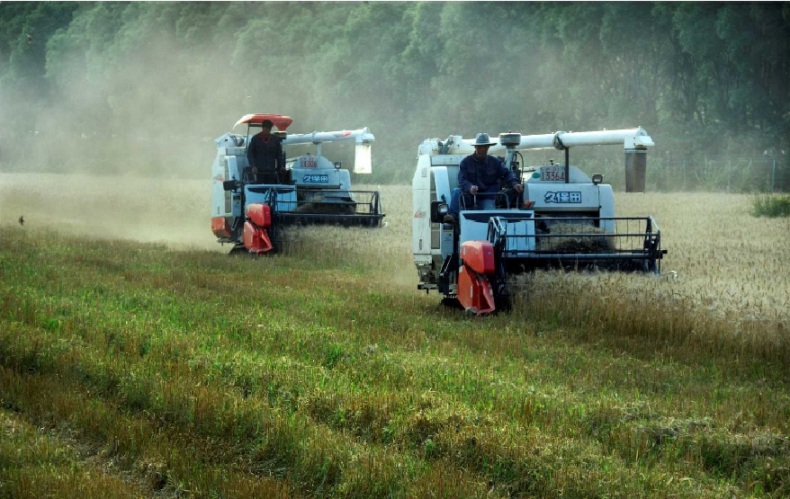 ▲收割水稻。
