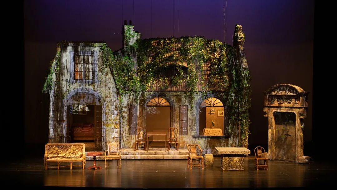 舞美设计黄楷夫所创作的舞台布景也简约而极具表现力:舞台中央,一所带有院落的平房坐落其中,它处于上海城市高楼环立的中心地带,却又独立成院,如同世外桃源一般格格不入;仿佛城市的繁荣与喧嚣时刻对这一钉子户进行着挤压,而它却依旧静止、卓然地屹立着,象征出主人公的回忆、态度,更是一种坚持。