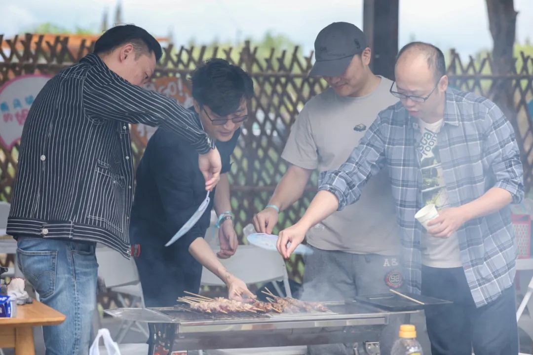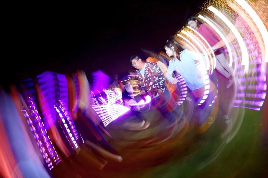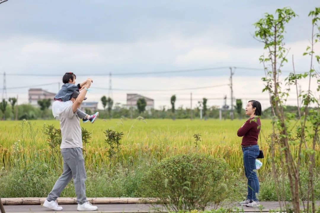 在迎龙村的又见炊烟营地,乡野集市上的射箭、投壶、主题迷宫、套圈、亲子露营等活动丰富多彩,水上皮划艇、乡野摇橹、垂钓,即可体验渔美河景,也可看两岸的和美宅基。夜幕降临,伴随着稻香阵阵,乡村音乐节唱响秋日的田野。有好玩的更有好吃的,方糕、竹筒饭、土灶饭让不少来此游玩的大人、小朋友都回味无穷。而在这些项目的背后,是迎龙村公益服务社的社员们在忙碌的身影。