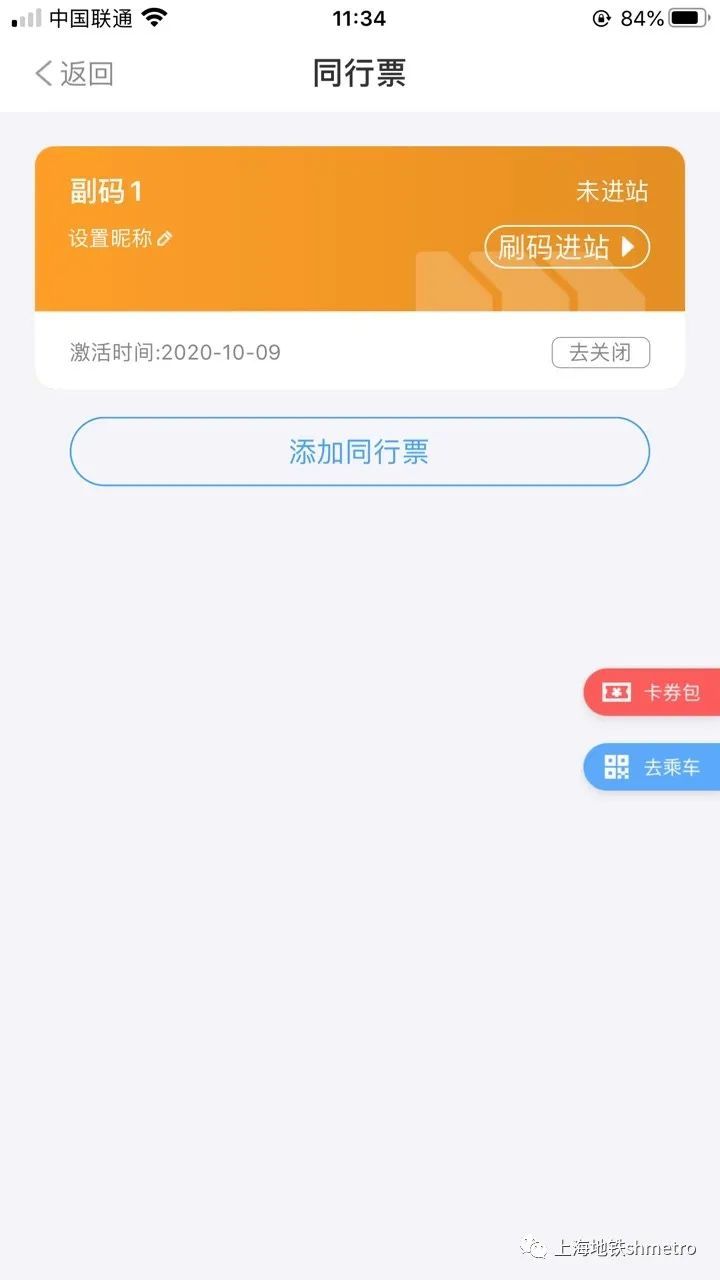 1、 同行票副码支持关闭吗?关闭同行票副码有什么前提条件?同行票副码激活后支持关闭。关闭的前提条件是该副码未在行程中,若该副码处于已进站未出站的状态,则该副码不支持关闭。关闭同行票副码操作方法: