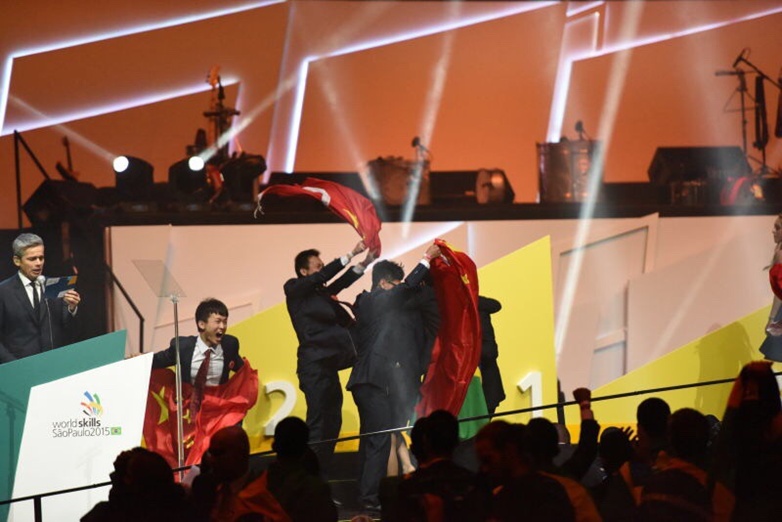 当第45届世界技能大赛车身修理项目冠军选手徐澳门挥舞着五星红旗,在颁奖台上忘情地雀跃着、呼喊着……