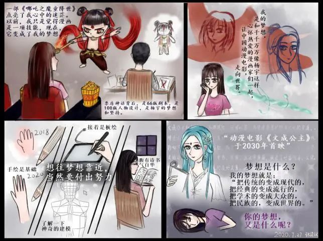 传承民族精神血脉,让红色基因在绘画中淌入青少年们的心间。此次活动结合青少年“四史”教育,在线上为青少年搭建动漫画的展示平台,引导广大青少年用四格漫画的形式,传承红色基因,学习楷模身上坚韧不拔、好学刻苦、乐观向上的精神,从小树立远大理想。小画家们有的描绘了科学家们了不起的发明《巧见浮力》、《伟大的发现》;有的描绘了文学家以笔为戎的故事《鲁迅的故事》、《马相伯毁家兴学》;有的描绘了运动健儿的优秀事迹《冠军的激励》、《我的排球梦》;有的描绘了自己的远大理想《彩虹青春》、《浩瀚星空,梦之征途》等,用画笔描绘优秀的人物事迹、记录内心的成长感悟。