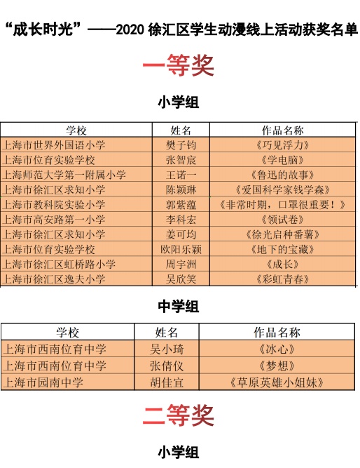 近日,上海市徐汇区青少年活动中心开展了“成长时光”——2020徐汇区学生动漫作品线上活动,共收到全市中小学近150位小画家的四格漫画作品。