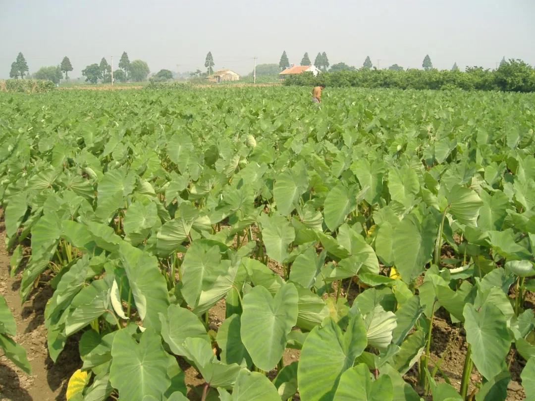 在崇明岛,出名的土特产不少,其中,芋艿的知名度尤为居高。每到夏秋时节,在农家的房前屋后,田间地头,沟沿河边,到处可见碧绿青翠的芋艿田,芋艿叶或挨挨挤挤,或稀稀疏疏,一大片一大片,构成了乡村中特有的旖旎风光。