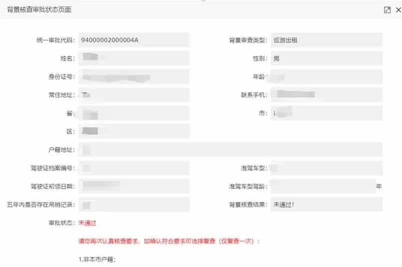 ②审查未通过的,点击查看详情确认自己填写的信息,可申请复查(仅一次复查),点击复查申请复查↓