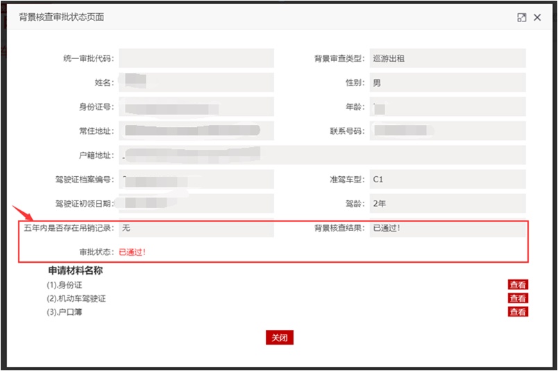 ①审查通过后进入“一网通办”中可以看到通过的情况,并且打印背景核查通过回执↓