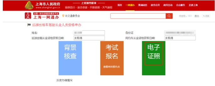 按顺序选择个人办事—>按部门—>上海市交通委员会—>出租汽车驾驶员从业资格证核发↓