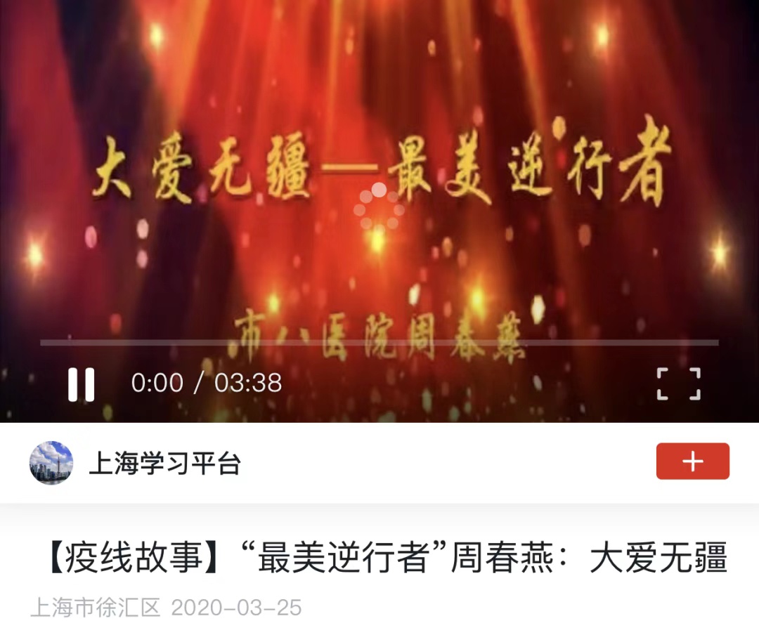 面对突如其来的新冠肺炎疫情,市八医院护士周春燕白衣为甲、逆行出征,英勇奋战在抗疫一线。近日,周春燕荣获“上海市抗击新冠肺炎疫情先进个人”称号。