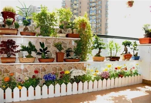花架:材质看个人喜好,只要牢固、美观即可。花架本身占地面积不大,相比栏杆能摆放更多数量的花草;